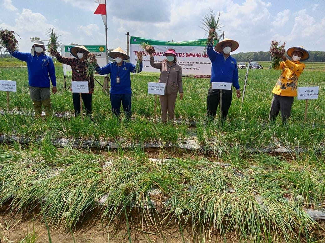 KIRKA – BPTP Lampung menggelar Kegiatan panen bersama Bawang Merah di Desa Rama Dewa, Kecamatan Seputih Rahman, Kabupaten Lampung Tengah secara onfline dan online pada Kamis 12 Agustus 2021.
