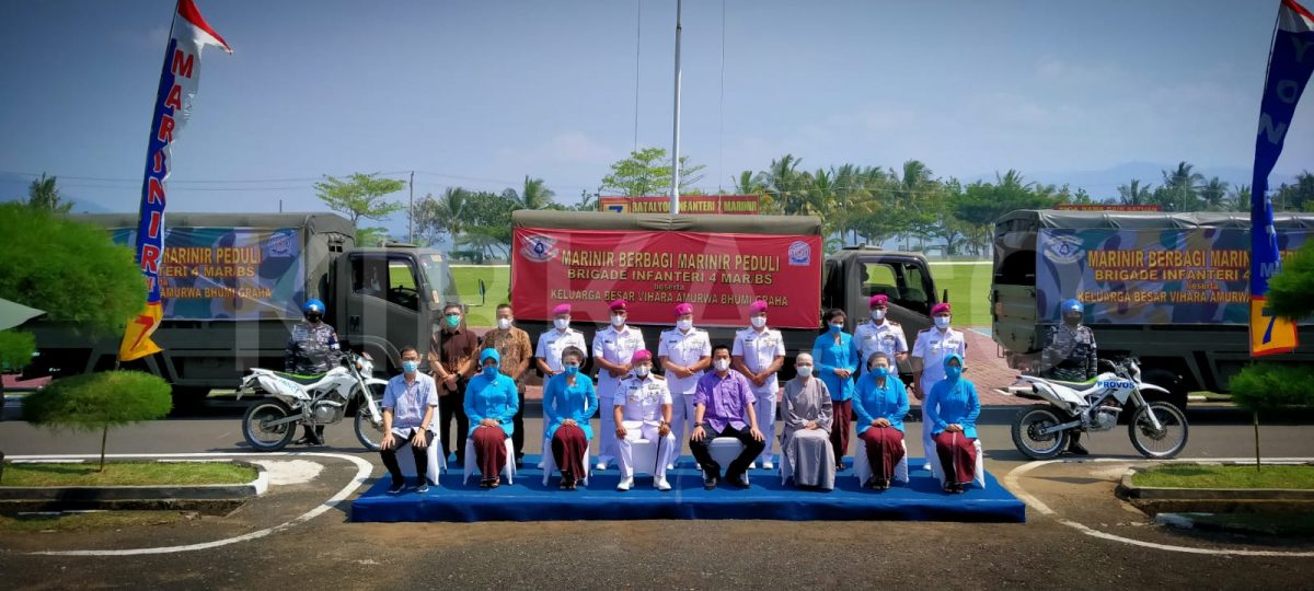 KIRKA – Brigif 4 Marinir/BS berkerjasama dengan Vihara Amurwa Bhumi Graha menyalurkan bantuan kepada warga membutuhkan berupa 1000 paket sembako.