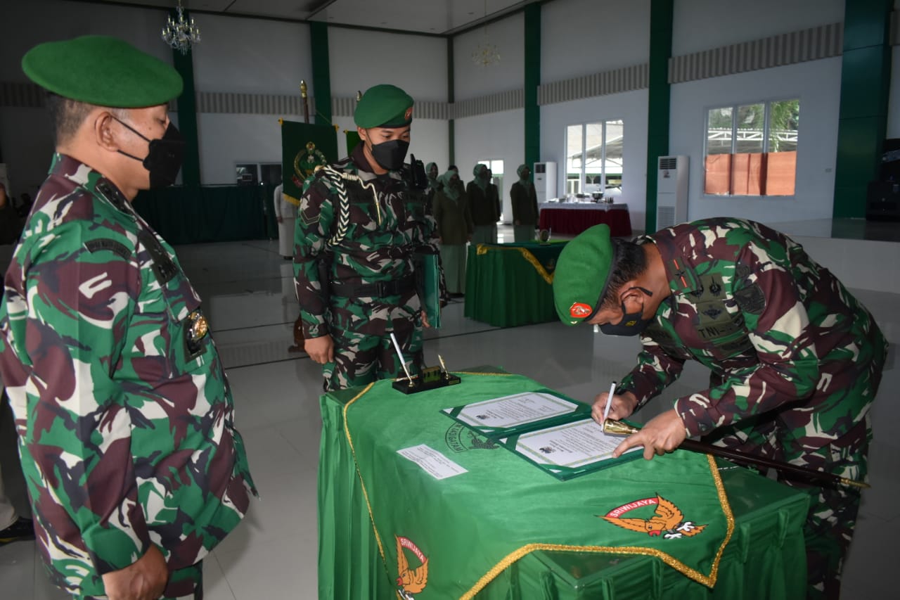 KIRKA – Komandan Korem 043/Gatam Brigjen TNI Drajad Brima Yoga,S.I.P., M.H. Pimpin penyerahan tugas dan tanggung jawab jabatan Kasrem 043/Gatam, Kolonel Czi Budi Hariswanto, S.Sos bertempat di Aula Sudirman Makorem 043/Gatam Jl. Teuku Umar No.85, Penengahan, Kec. Tj. Karang Pusat, Kota Bandar Lampung, Selasa 22 Juni 2021.
