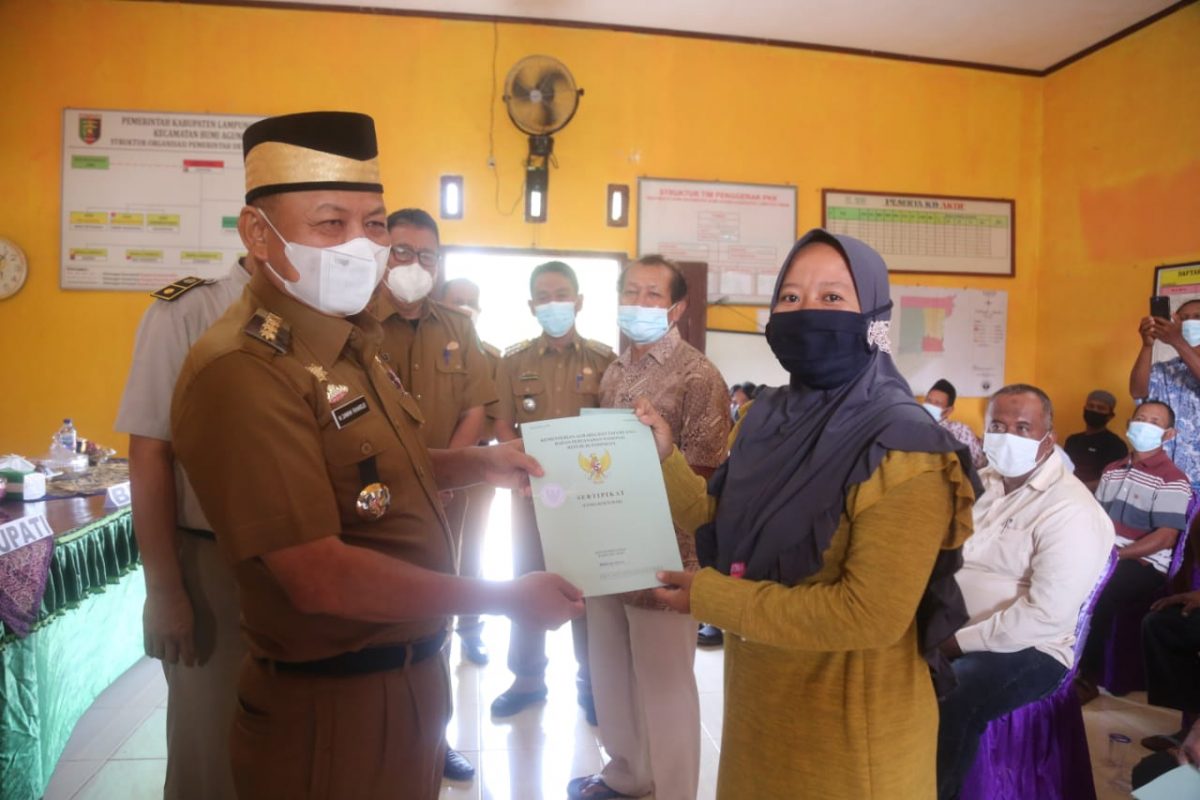 Dalam acara tersebut Bupati Dawam didampingi oleh Asisten Bidang Perekonomian dan Pembangunan, Datang Cahaya Hartawan, Kepala Dinas Perumahan, Kawasan Pemukiman dan Pertanahan, Mulyanda, Kepala Badan Pertanahan Nasional Diwakili Oleh Kasi Penataan Dan Pemberdayaaan Iwan Yuliansyah, Camat Serta Forkopimcam Bumi Agung.