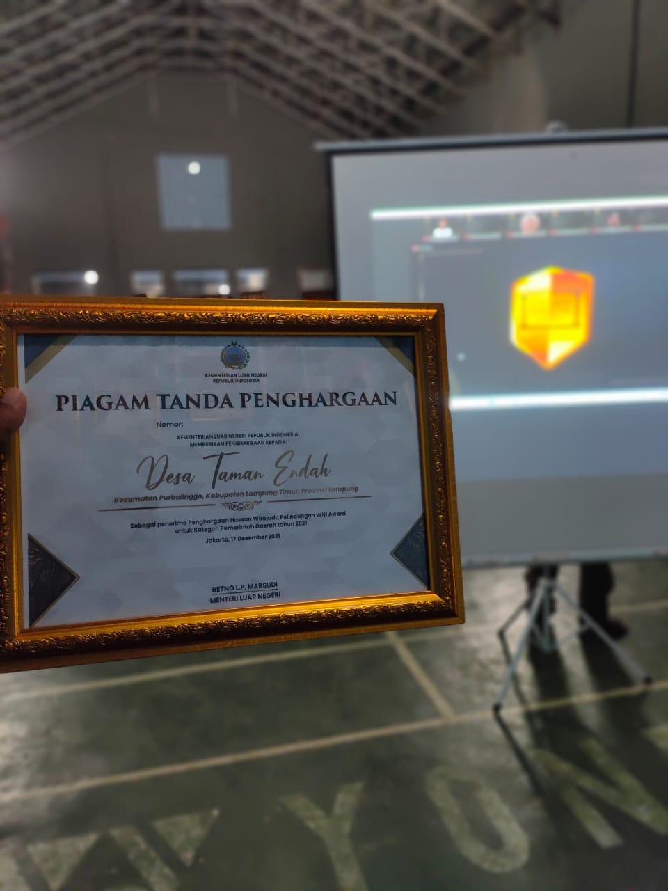 KIRKADesa Taman Endah, Kecamatan Purbolinggo, Kabupaten Lampung Timur meraih penghargaan Hassan Wirajuda Perlindungan Award (HWPA) 2021 oleh Kementerian Luar Negeri dalam Kategori Pemerintah Daerah.