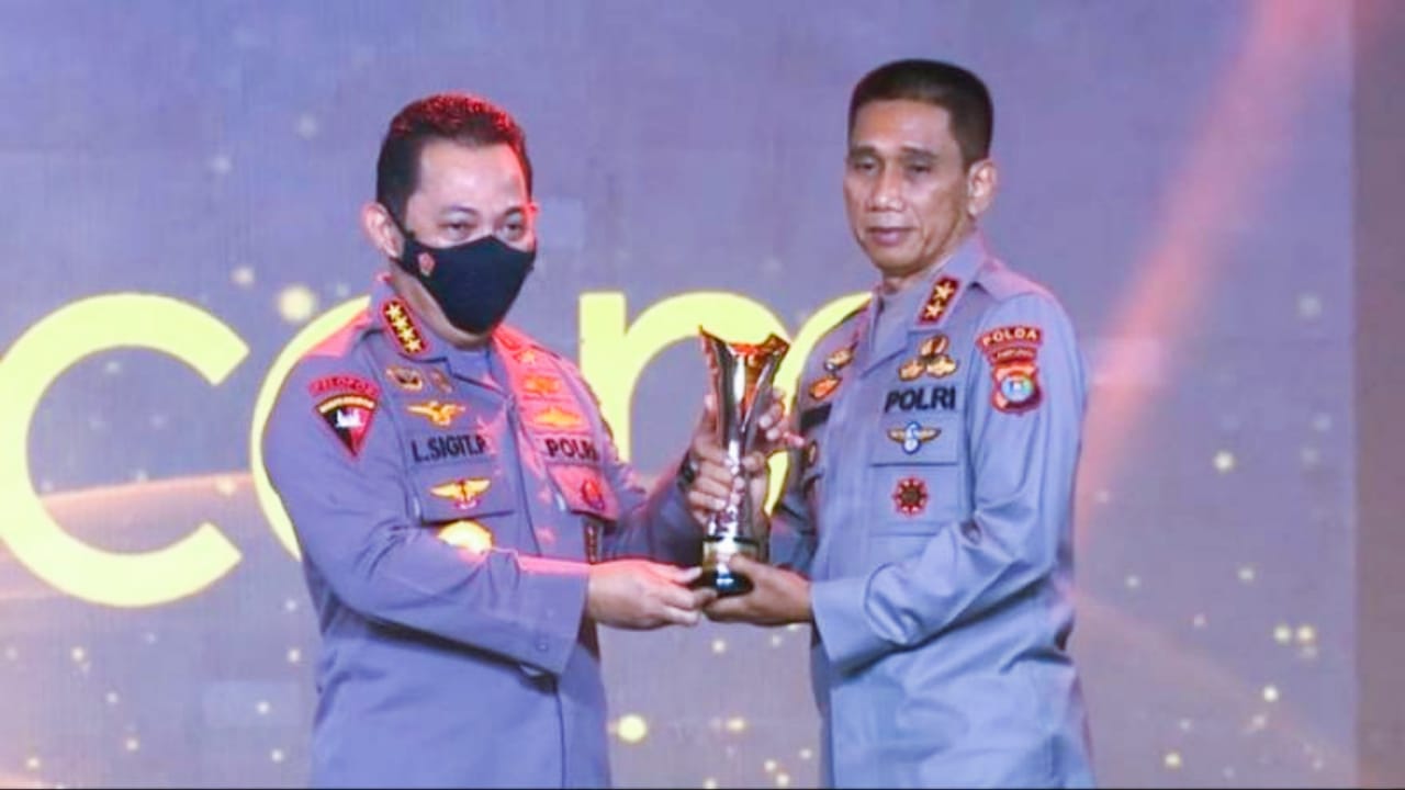 Irjen Pol Akhmad Wiyagus saat menerima penghargaan Hoegeng Awards 2022 dari Kapolri Jendral Polisi Listiyo Sigit Prabowo. Foto: Istimewa.