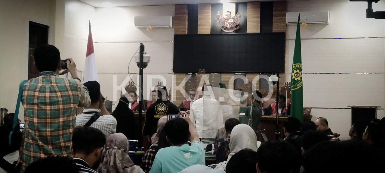 Suasana sidang lanjutan perkara dugaan suap dan gratifikasi penerimaan mahasiswa baru Unila, yang digelar pada Selasa 7 Maret 2023, di PN Tipikor Tanjungkarang. Foto: Eka Putra