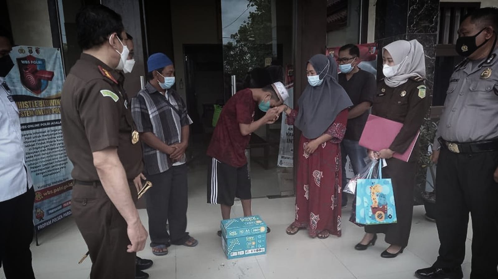 Usai menerima kebebasan dari jeratan hukum kali ini, Terdakwa pun menerima pemberian dari Kepala Kejaksaan Tinggi Lampung dan Kepala Kejaksaan Negeri Pringsewu, berupa 1 unit handphone dan vocher kuota internet sebesar Rp 1 juta rupiah, berikut alat tulis untuk keperluan sekolah.