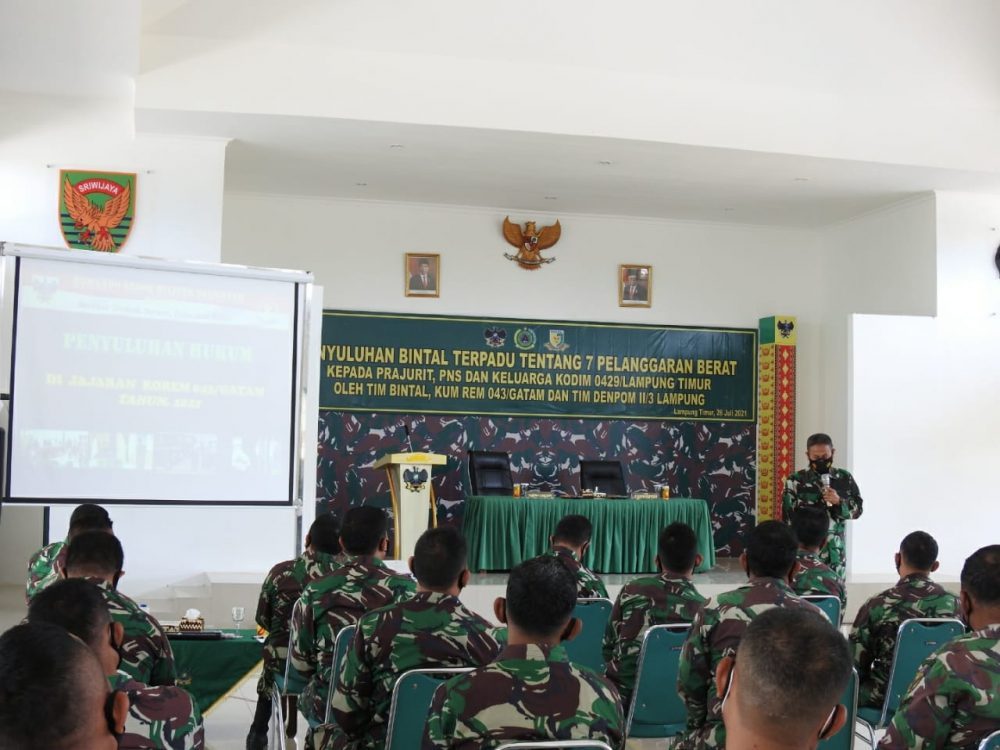 Komandan Kodim 0429/Lamtim Letkol Kav. Muhammad Darwis didampingi Kasdim Mayor Kav. Joko Subroto menyampaikan, kegiatan penyuluhan Pembinaan Mental (Bintal) terpadu tujuh pelanggaran berat yang harus dihindari oleh Prajurit dan PNS ini sesuai dengan petunjuk dari Komando atas dalam hal ini Surat Telegram Danrem 043/Gatam Nomor ST/370/2021 tanggal 5 Juli 2021.