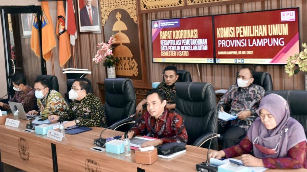 KIRKAKPU Lampung mulai sinkronisasi DPB dengan data Ditjen Dukcapil dalam Rapat Koordinasi Rekapitulasi Pemutakhiran Data Pemilih Berkelanjutan (DPB) Semester I Tahun 2022.