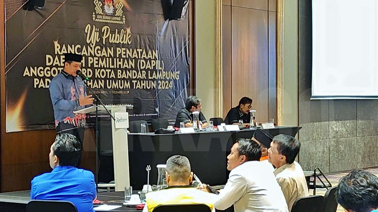 Hal itu disampaikan Tim Asistensi KPU RI, Salahuddin, dalam Uji Publik Rancangan Penataan Daerah Pemilihan (Dapil) Anggota DPRD Kota Bandar Lampung pada Pemilu 2024.