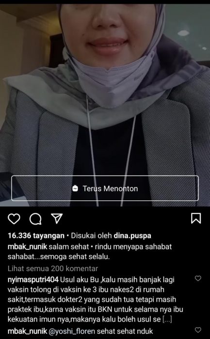 Unggahan video Chusnunia dikomentari netizen karena ia telah lama tidak beraktivitas di medsos-nya. Foto: Akun Instagram @mbak_nunik.
