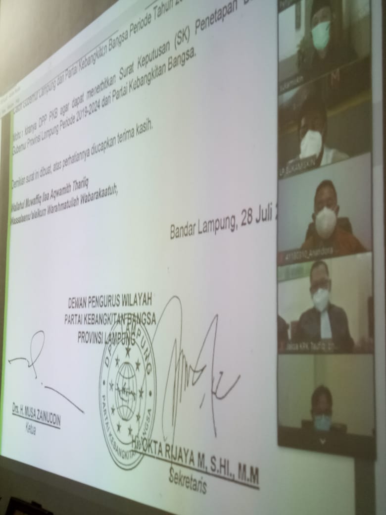 Lembaran berkas yang dibubuhi tanda tangan dari Ketua dan Sekretaris DPW PKB Provinsi Lampung tersebut, terlihat jelas dengan isi sebagai berikut :