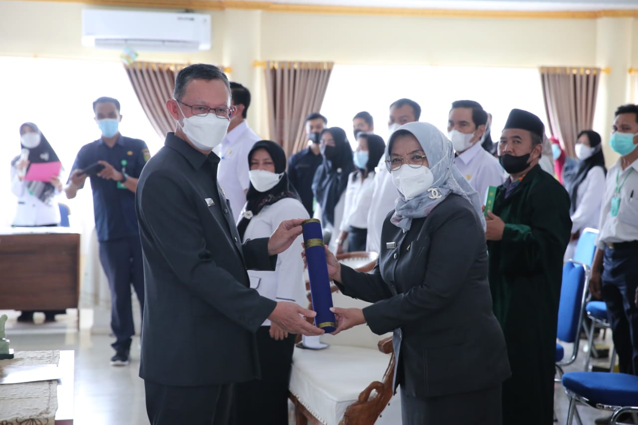 KIRKA – Sekdaprov Lampung Fahrizal Darminto, melantik dan mengambil sumpah jabatan dr. Nuyen Fitria, MARS sebagai Direktur RSJ Daerah Provinsi Lampung, Rabu (1/12/2021).