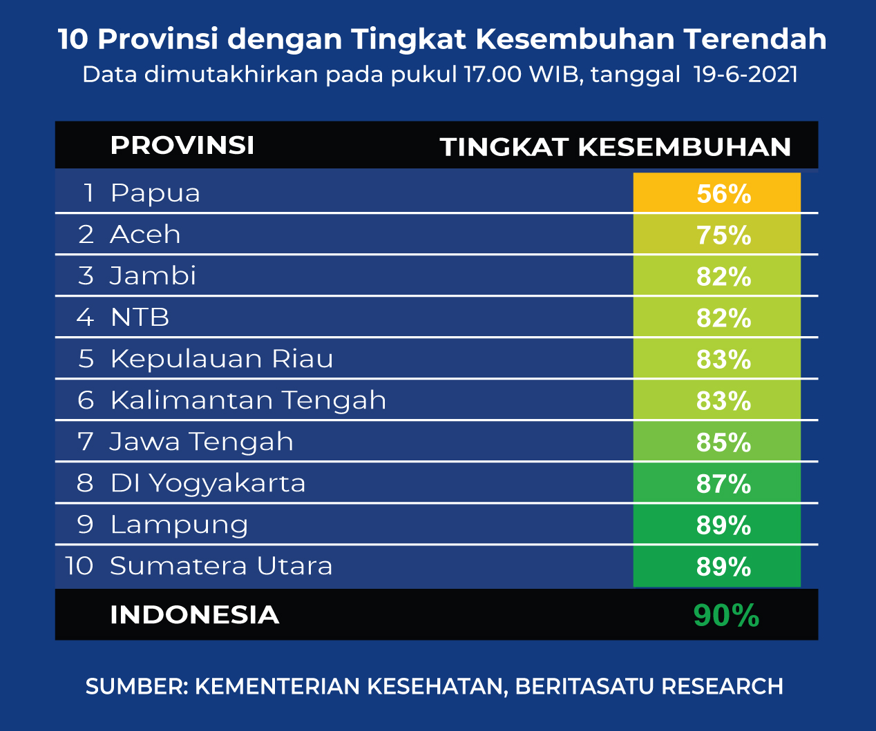 Selain itu, Lampung juga menduduki peringkat 9 dengan angka kesembuhan terendah se-Indonesia mencapai 89 persen.
