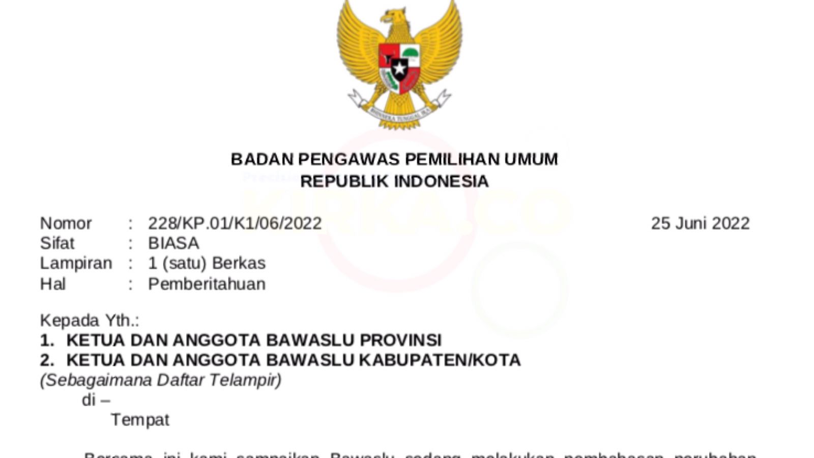 Surat Bawaslu RI Nomor: 228/KP.01/K1/06/2022.