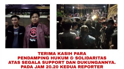 KIRKA.CO – Aktivis Pers Mahasiswa akhirnya dibebaskan Polisi. Telah terjadi penangkapan dua reporter, Pemimpin Redaksi Pers Mahasiswa LPM Marhaen Chaerul Anwar dan Anggota Pers Mahasiswa LPM Suandira Azra Badrianan dari Universitas Bung Karno, Jakarta Pusat. Mereka…