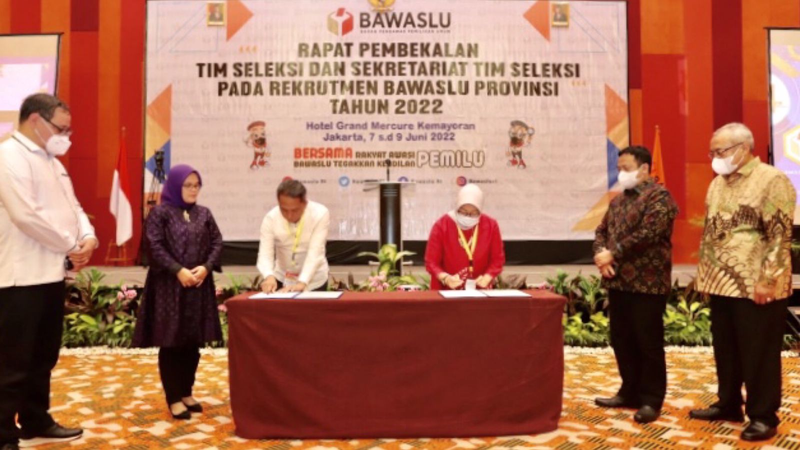 KIRKA – Tim Seleksi Bawaslu Provinsi tandatangani Pakta Integritas usai mendapatkan pembekalan di Hotel Grand Mercure Kemayoran, Jakarta pada 7-9 Juni 2022.