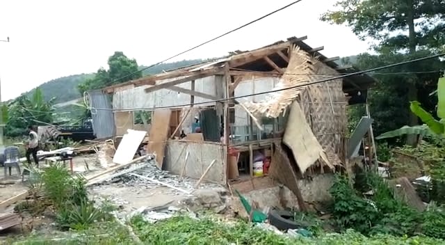 Dari pantauan di lokasi kejadian, bangunan semi permanen dengan luas tanah 5×6 meter persegi mengalami rusak cukup parah. Bangunan yang seluruhnya terbuat dari geribik serta kayu ini rusak dibagian atap hingga belakang rumah.